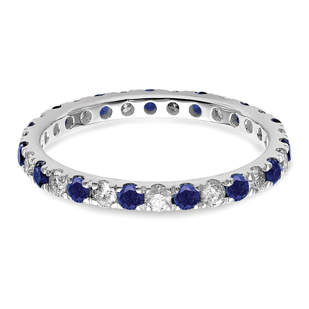 14k White Gold 3/8 carat Lab Grown Diamond VS/SI+ G+ and Lab Created Blue Sapphire Size 5 Eternity Band