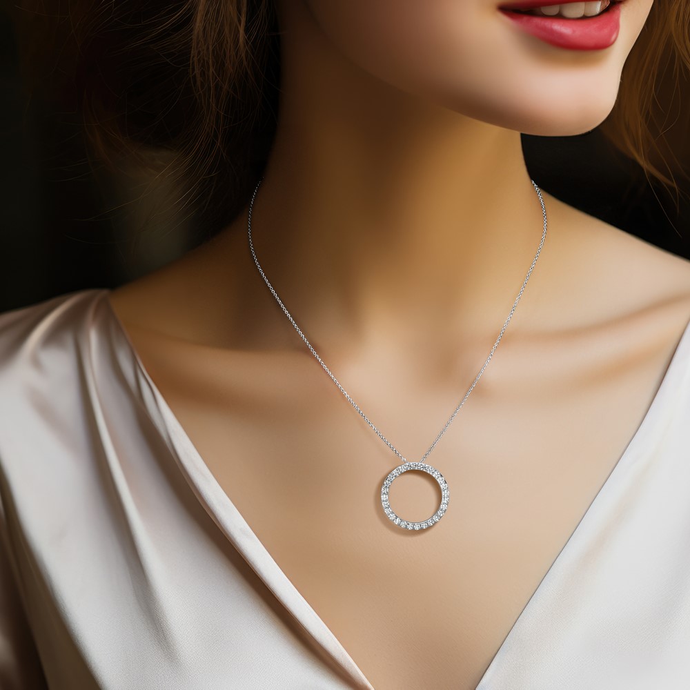 14k White Gold 2 carat Lab Grown Diamond VS+ F+ Complete Circle Chain Slide Pendant