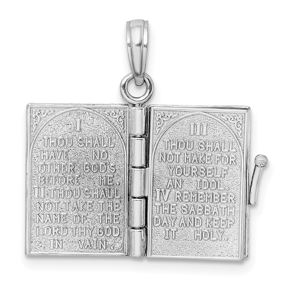 14K White Gold 3-D THE TEN COMMANDMENTS Book with Moveable Pages Pendant