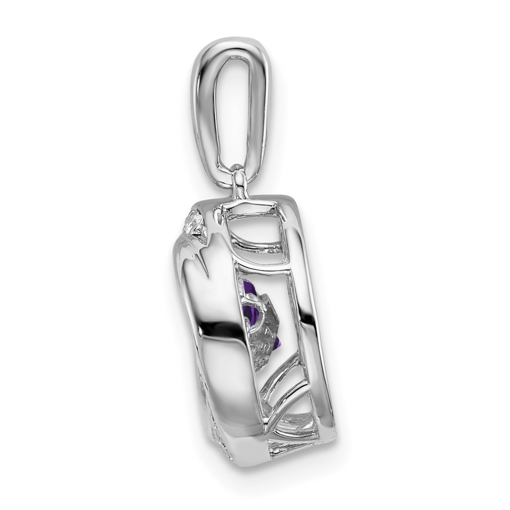 14k White Gold 4.5mm Round Moving Vibrant Amethyst and Diamond Pendant