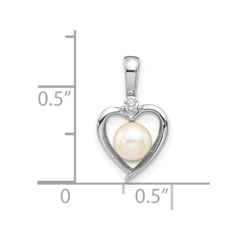 14k White Gold 5.5mm June/Freshwater Cultured Pearl and Diamond Heart Pendant