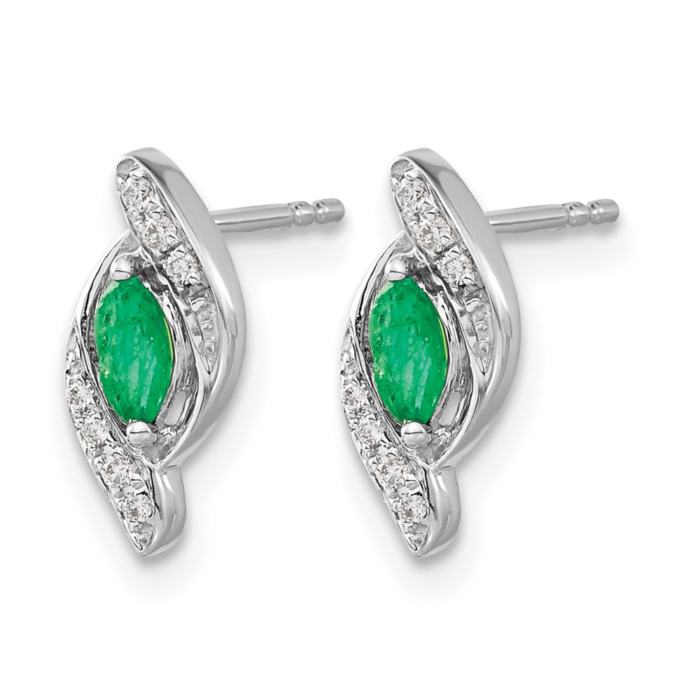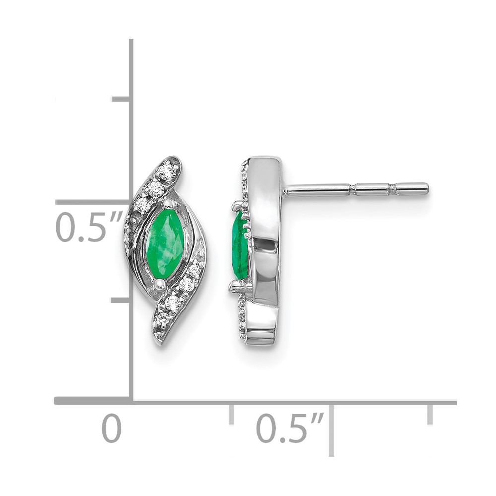 14k White Gold 5×2.5mm Marquise Emerald and Diamond Post Earrings
