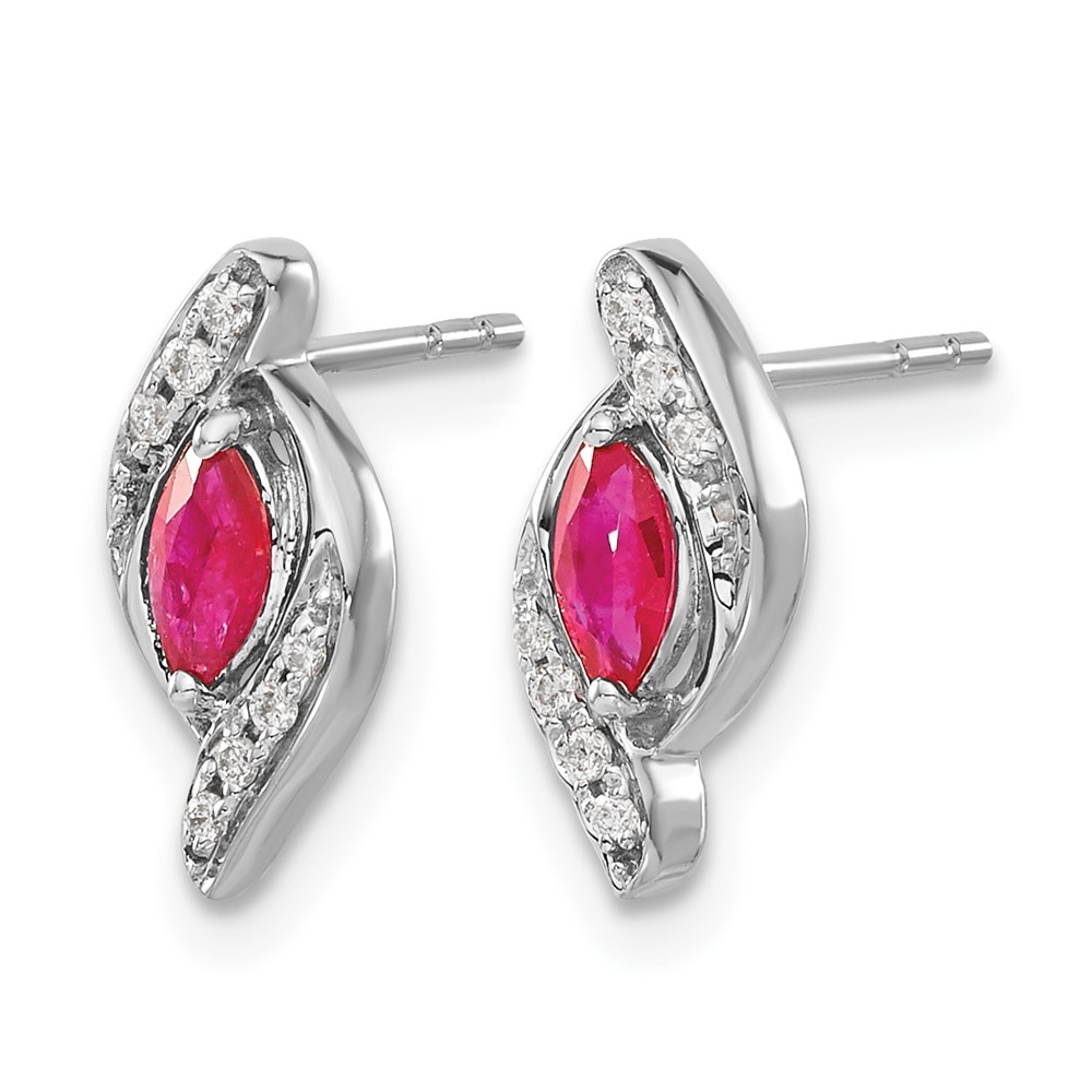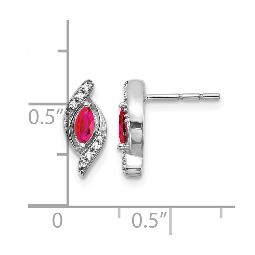 14k White Gold 5×2.5mm Marquise Ruby and Diamond Post Earrings