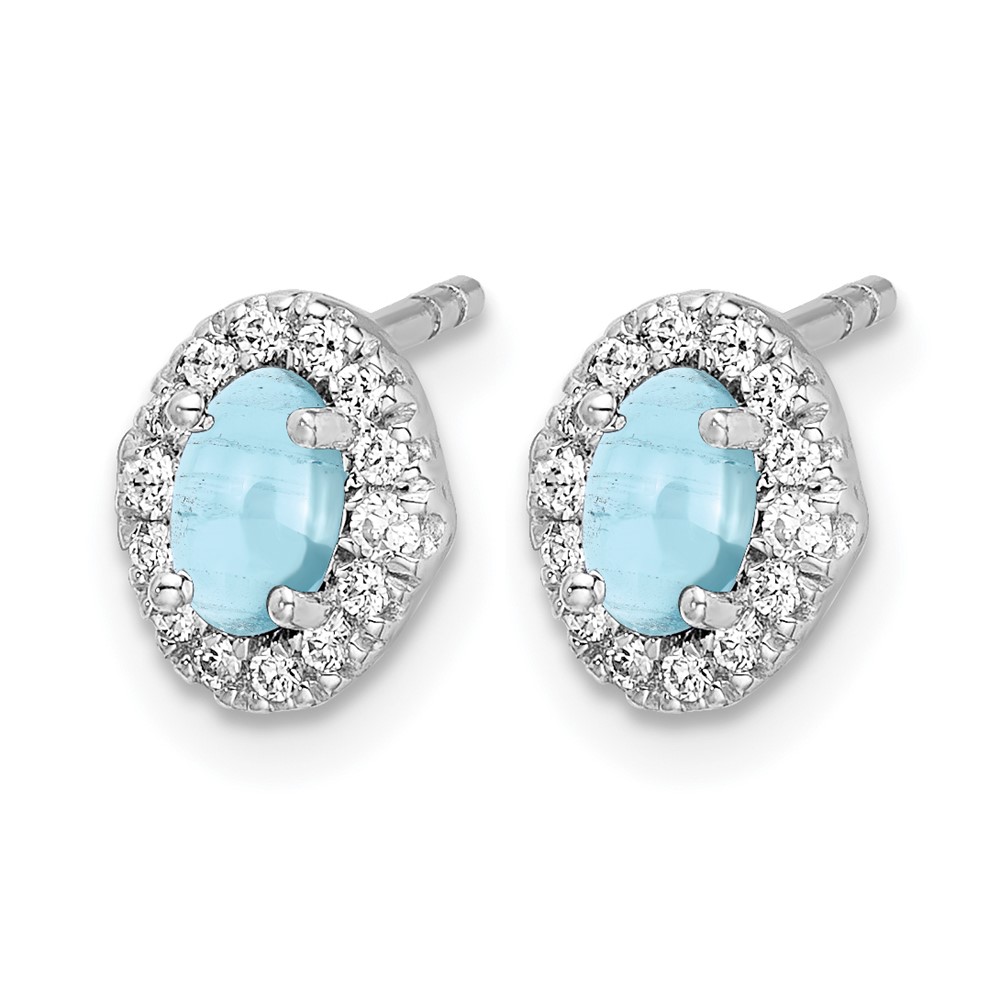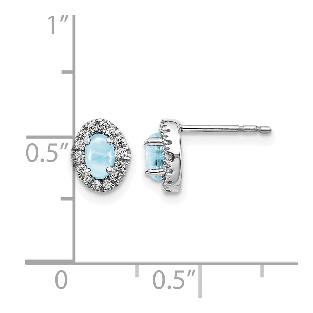 14k White Gold 5x3mm Oval Aquamarine Cabochon and Diamond Halo Post Earrings