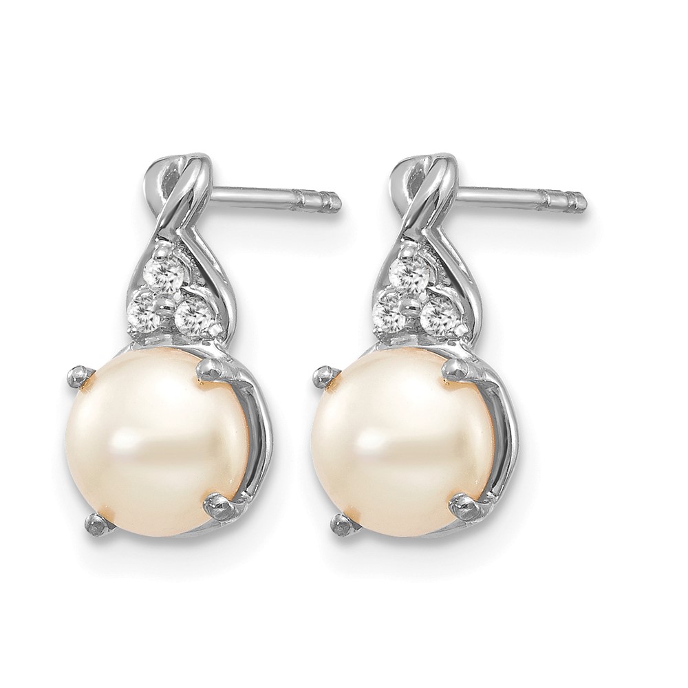 14k White Gold 6mm June/Freshwater Cultured Pearl and Diamond Post Earrings