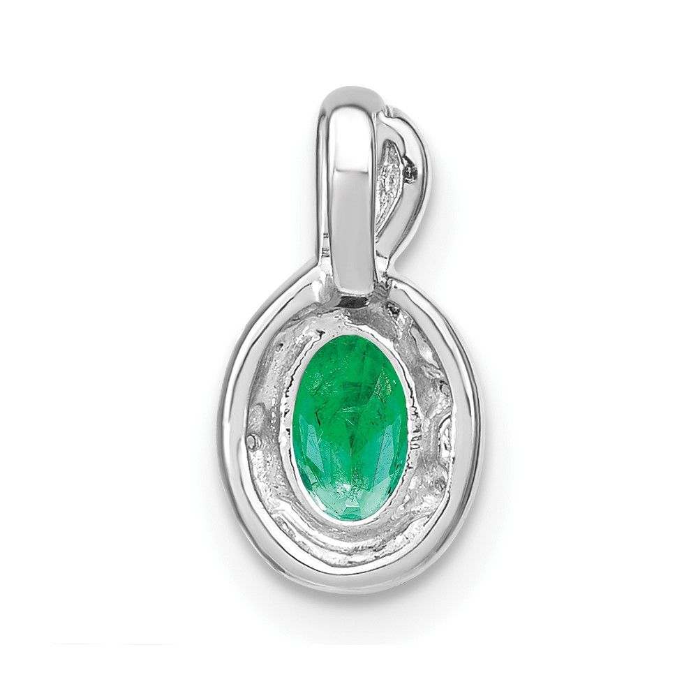 14k White Gold 6x4mm Oval Emerald and Diamond Halo Pendant