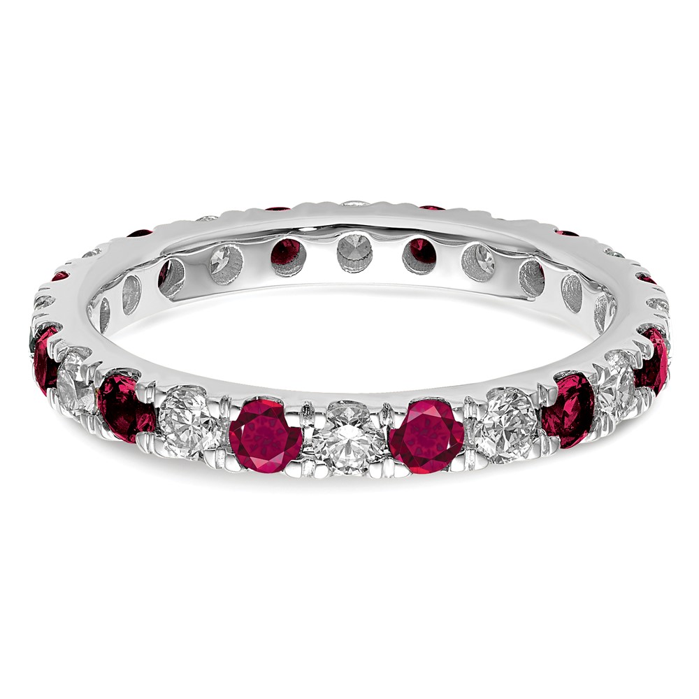 14k White Gold 7/8 carat Lab Grown Diamond VS/SI+ G+ and Lab Created Ruby Size 8.5 Eternity Band