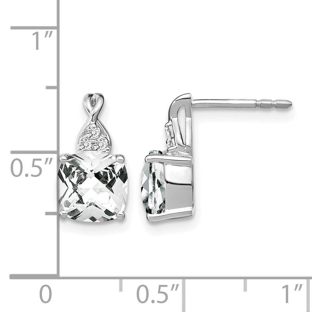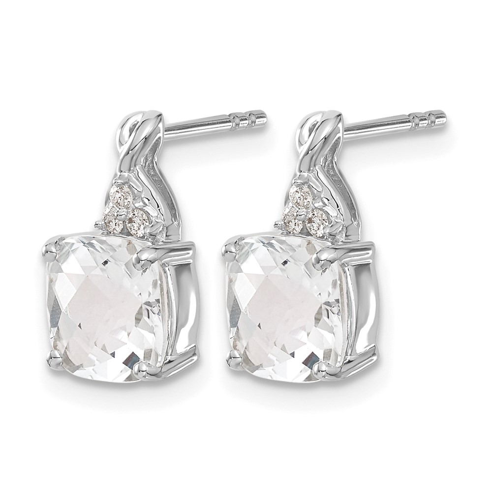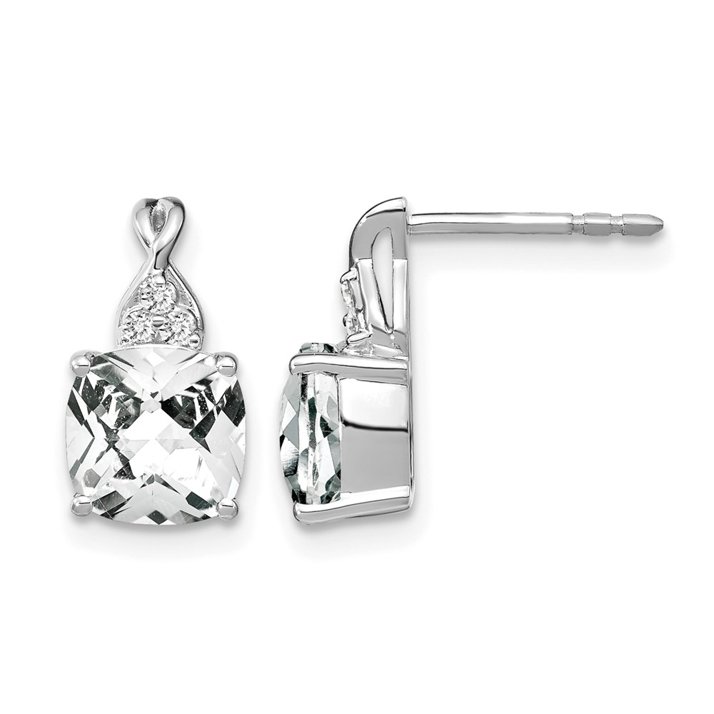 14k 7mm Cushion Checkerboard April/White Topaz and Diamond Post Earrings