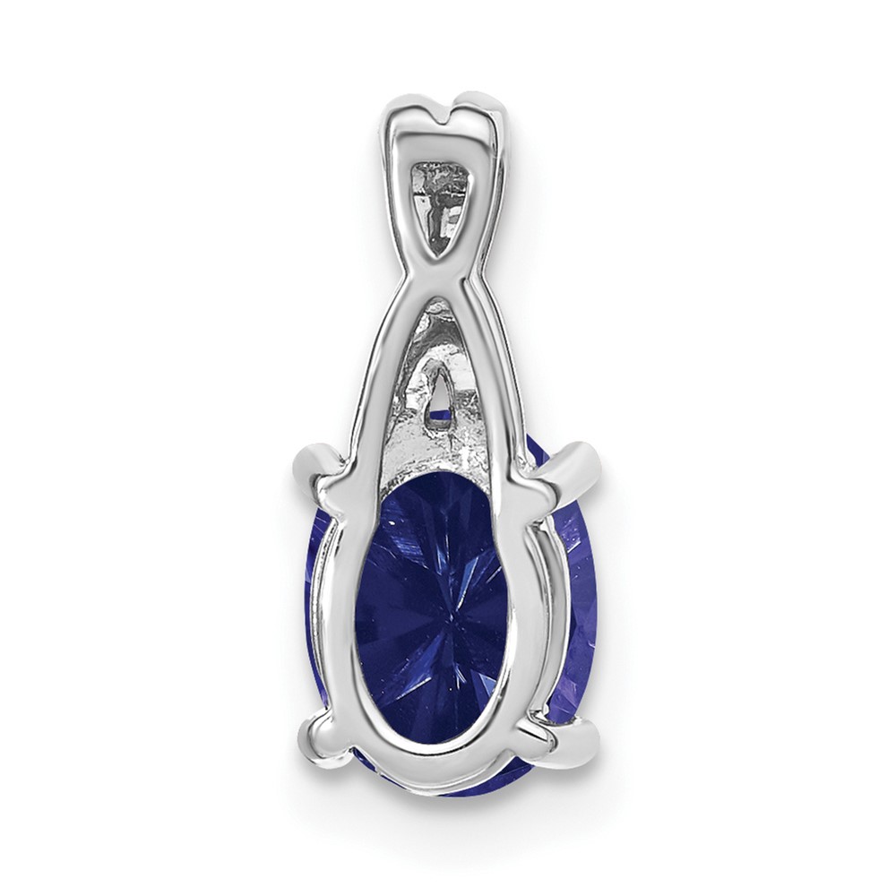 14k White Gold 7x5mm Oval Lab Created Sapphire and Diamond Pendant
