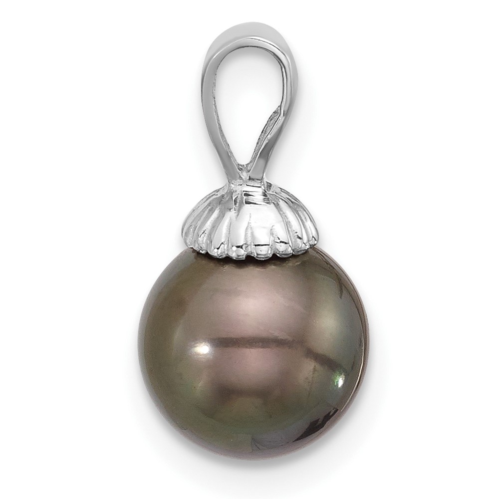 14K White Gold 8-9mm Round Black Tahitian Saltwater Cultured Pearl Pendant