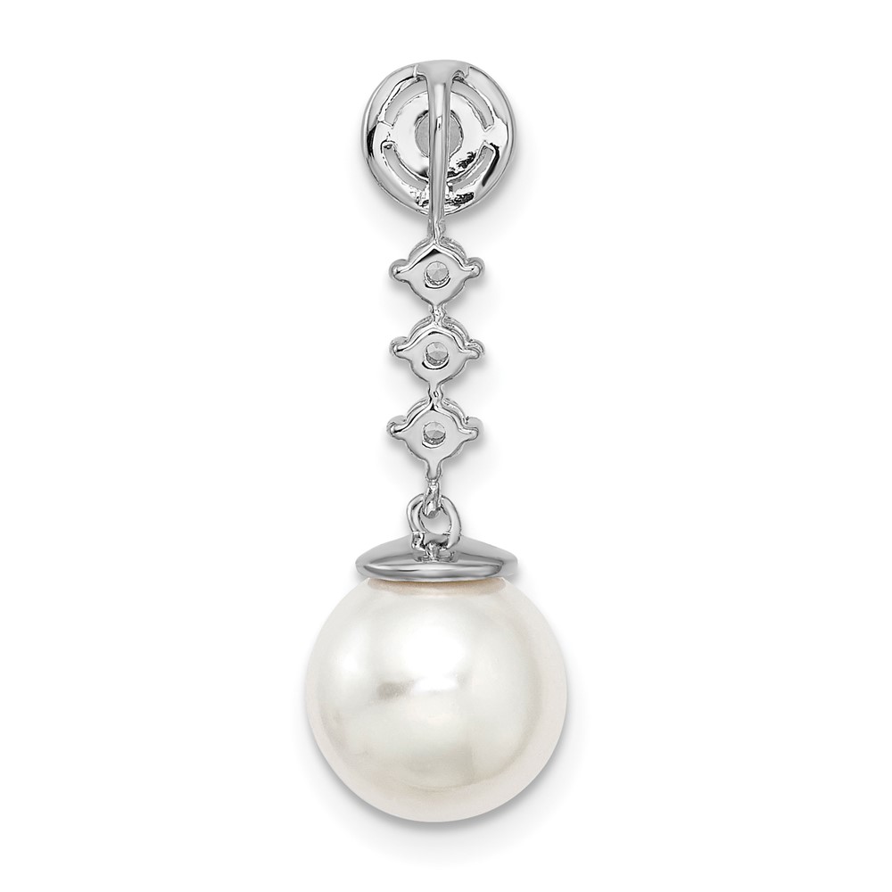 14k White Gold 8-9mm Round White Freshwater Cultured Pearl and Diamond Chain Slide