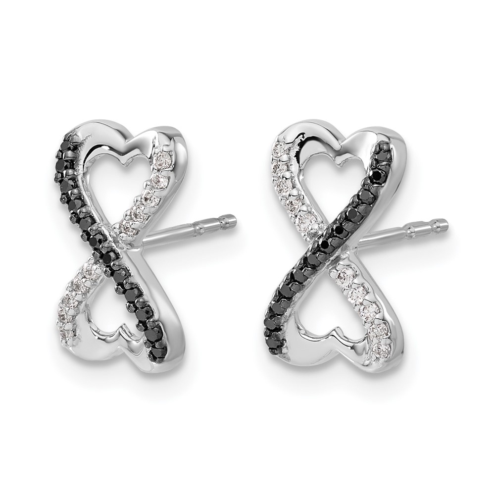 14k White Gold Black and White Diamond Infinity Heart Post Earrings