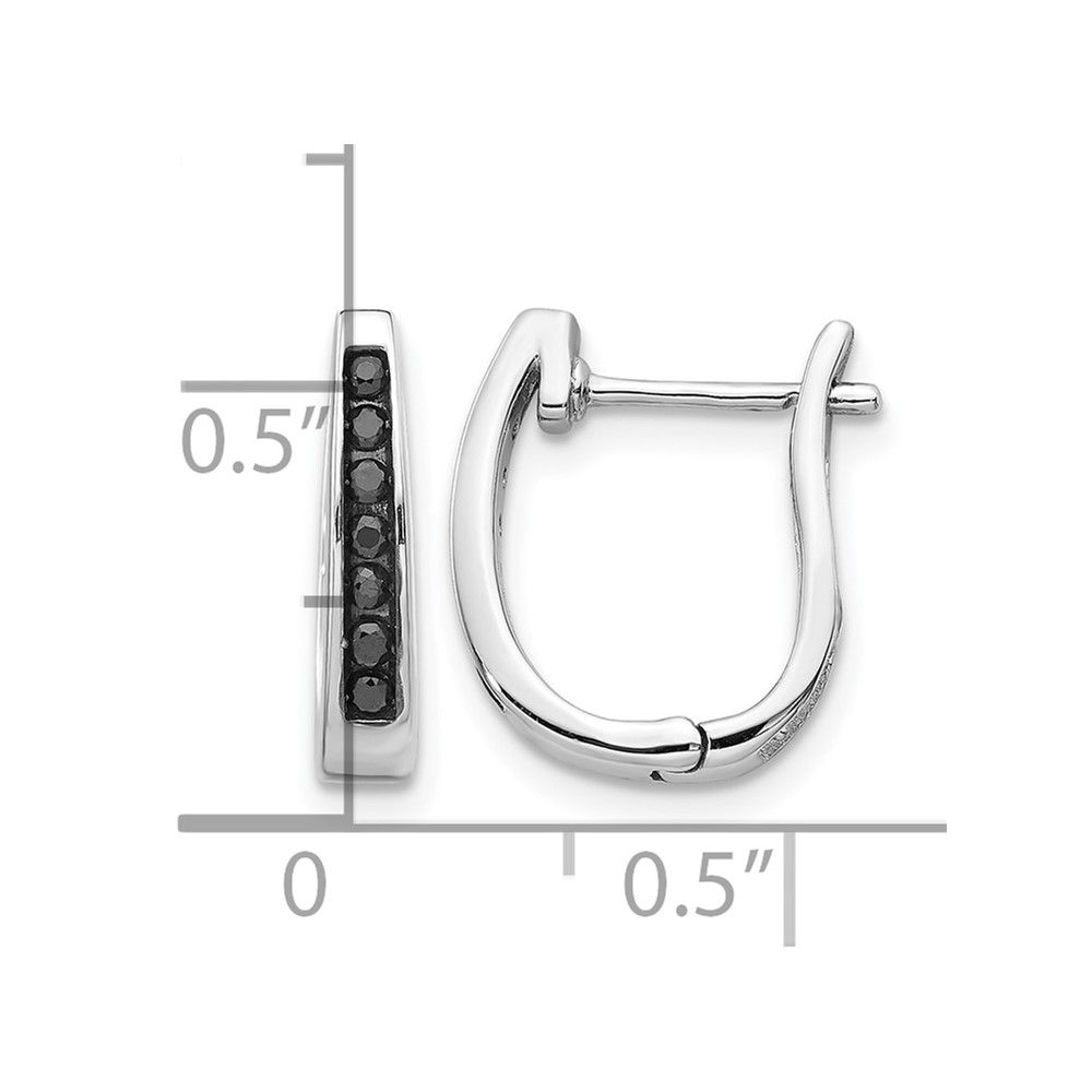 14k White Gold Black Diamond 3mm Hinged Hoop Earrings