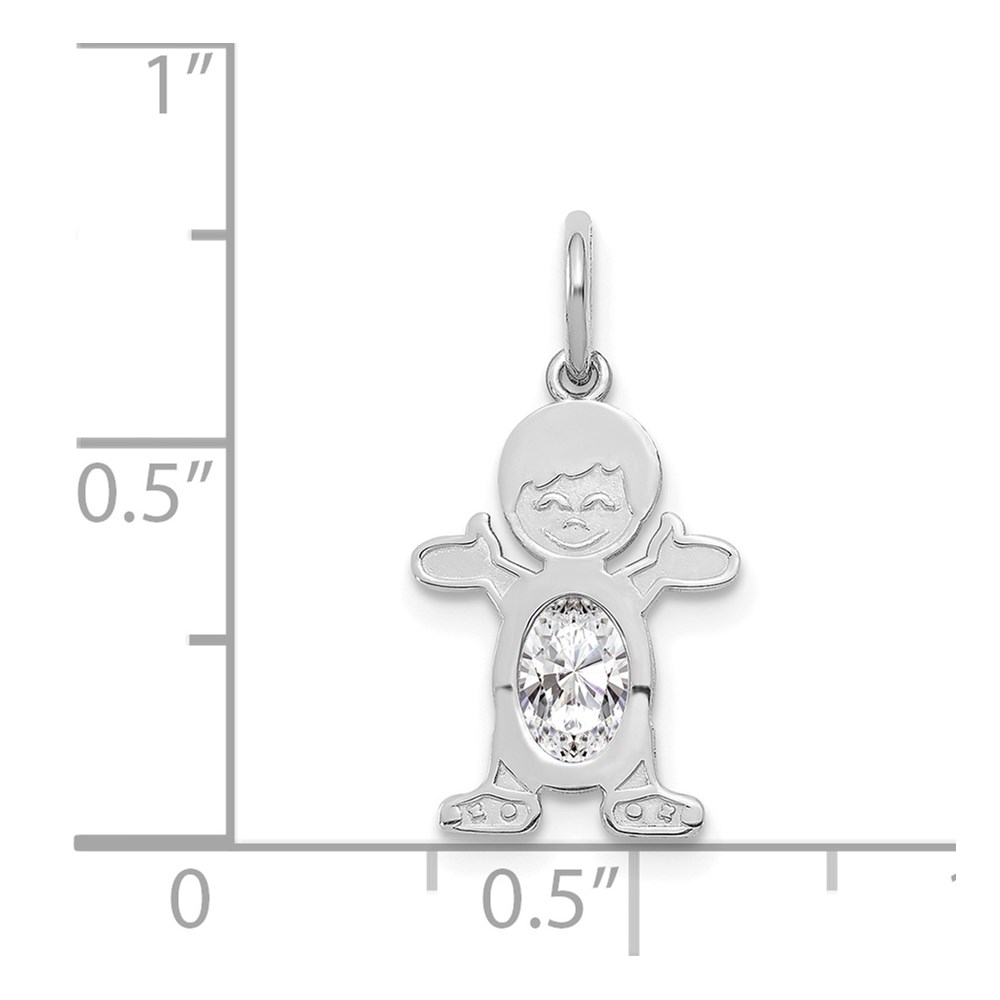 14K White Gold Boy Charm 6×4 Oval Genuine White Topaz-April