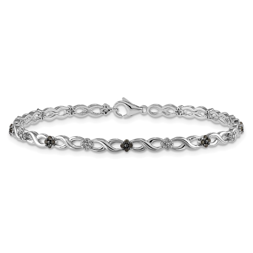 14k White Gold Complete 1/2 carat White and Black Diamond Flower Infinity 7 inch Bracelet