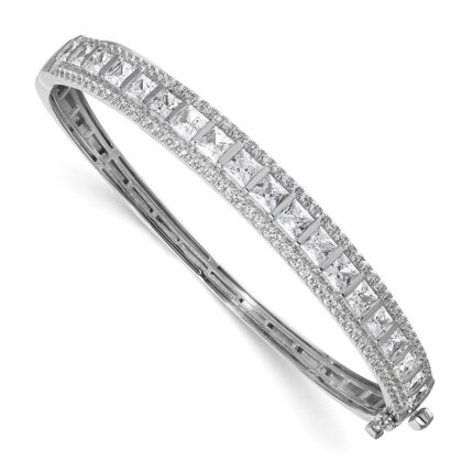 14k White Gold 5 carat Lab Grown Diamond VS/SI+ G+ Round and Princess Hinged Complete Bangle Bracelet