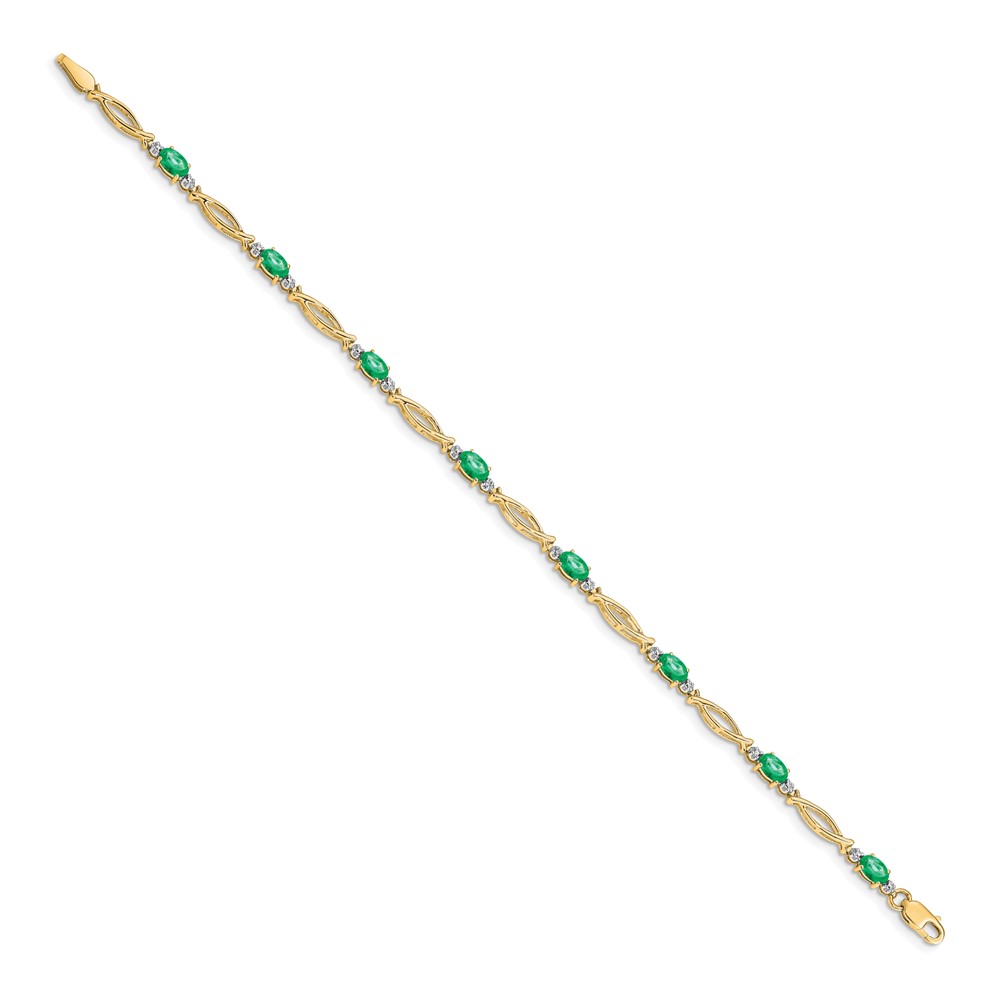 14k White Gold Complete Diamond and Oval Emerald 7.25 inch Bracelet