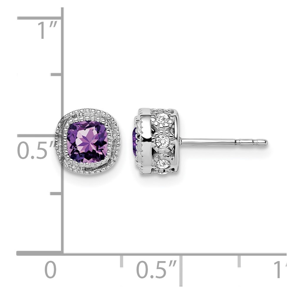 14k White Gold Cushion Amethyst and Diamond Earrings