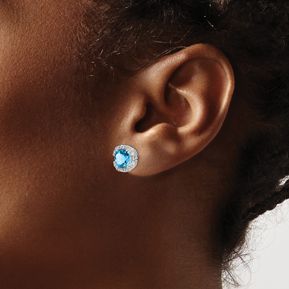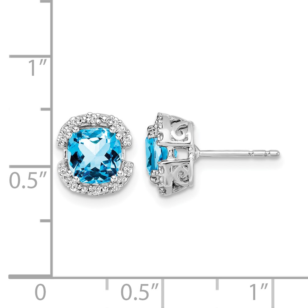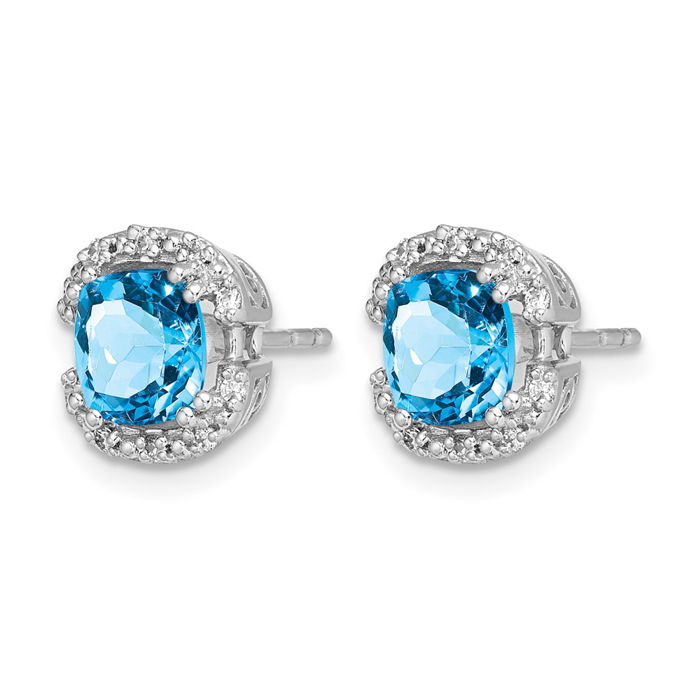 14k White Gold Cushion Blue Topaz and Diamond Halo Earrings