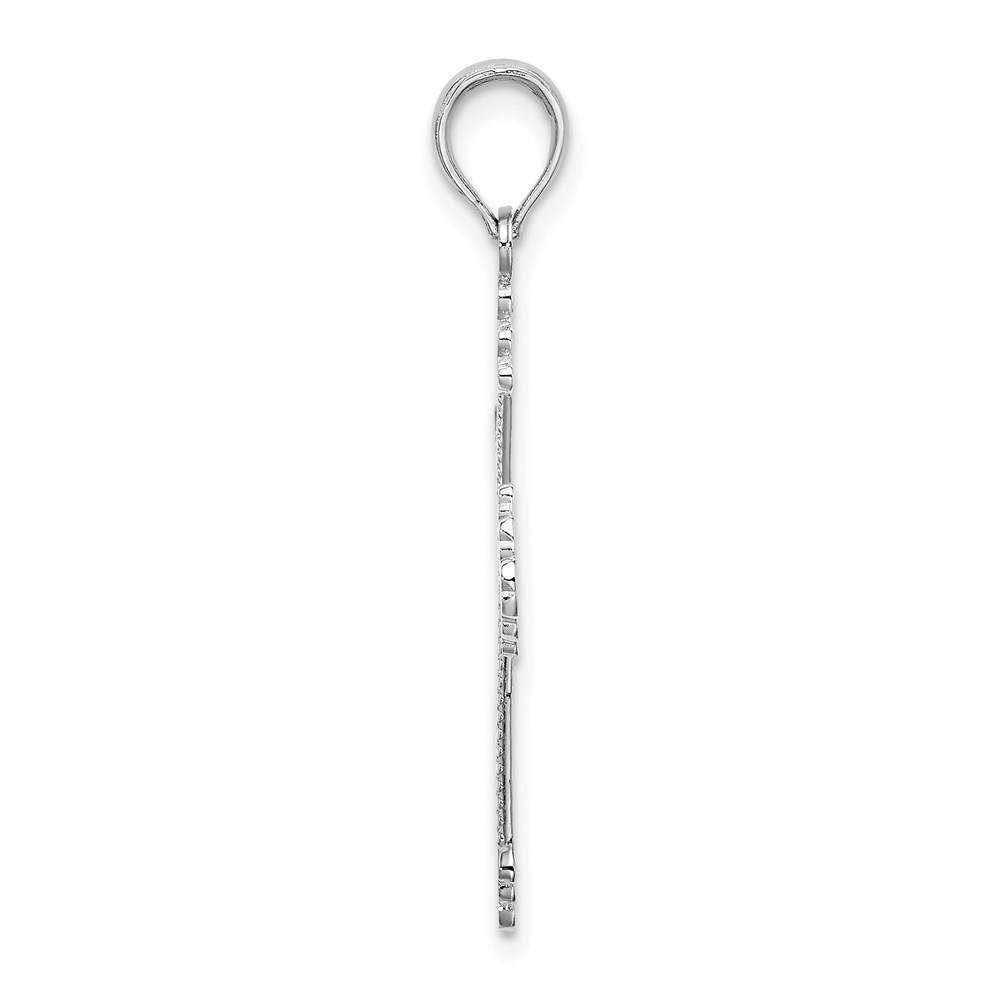 14K White Gold Cut-Out Stripes Cross with Heart Charm