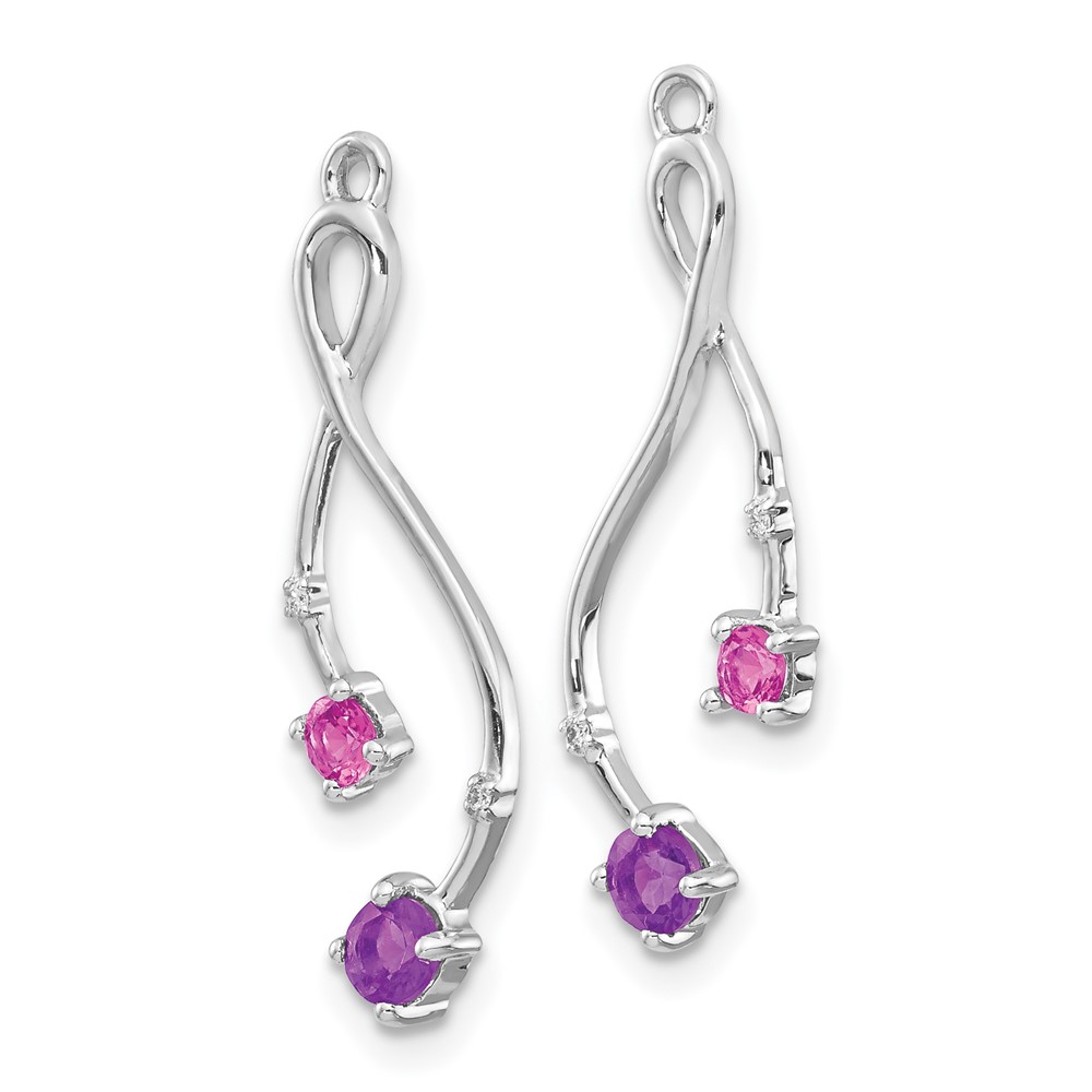 14k White Gold Diamond/Amethyst/Pink Tourmaline Dangle Earring Jackets