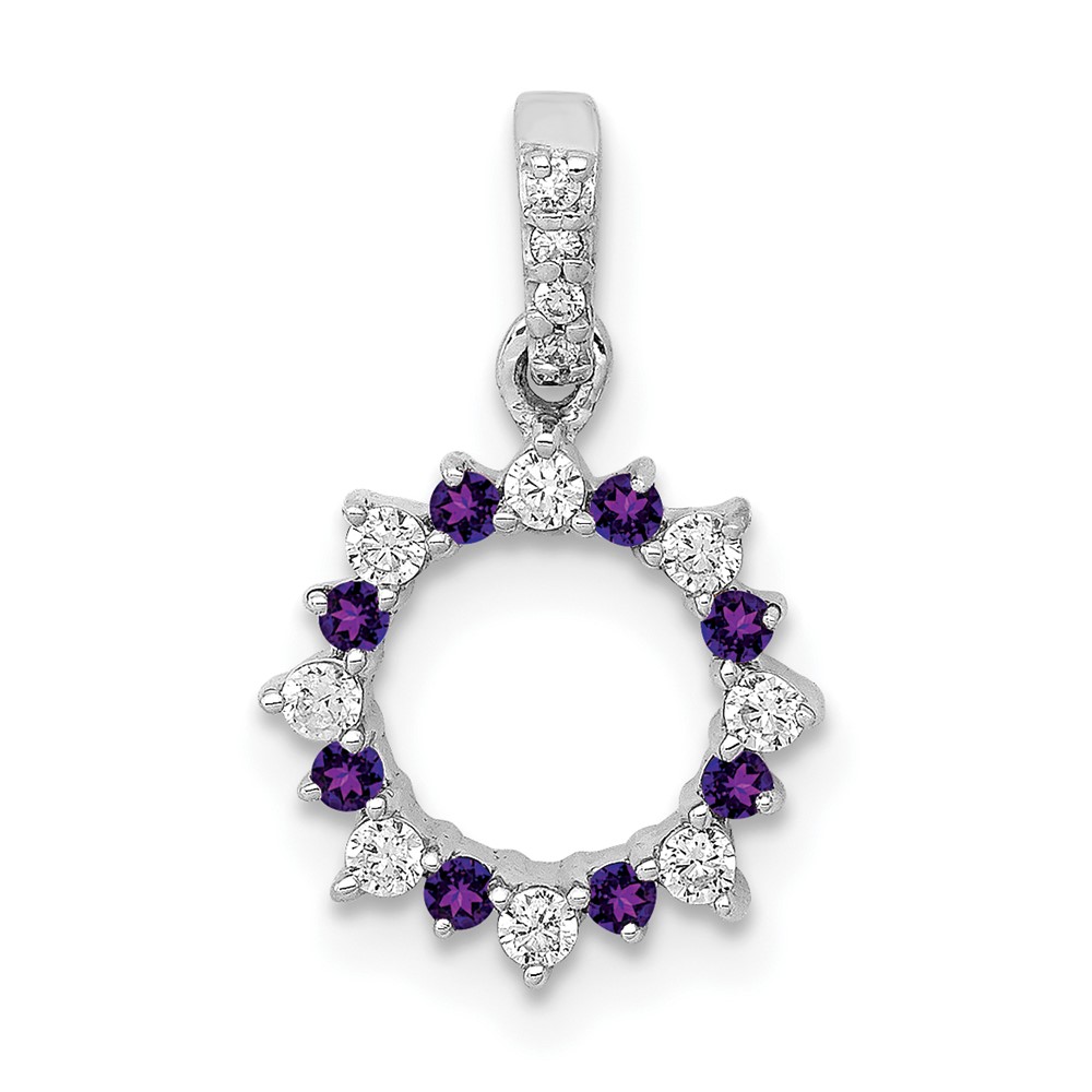 14k White Gold Diamond and .08 Amethyst Fancy Circle Pendant