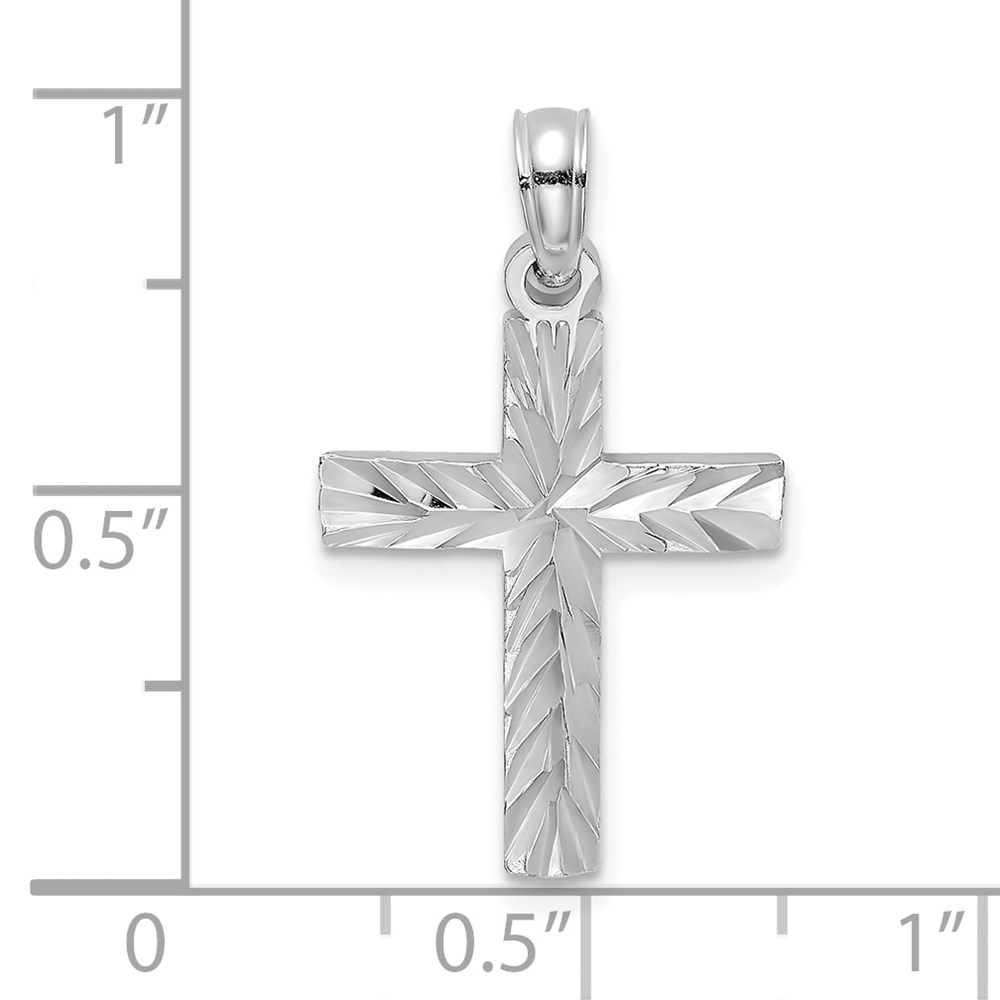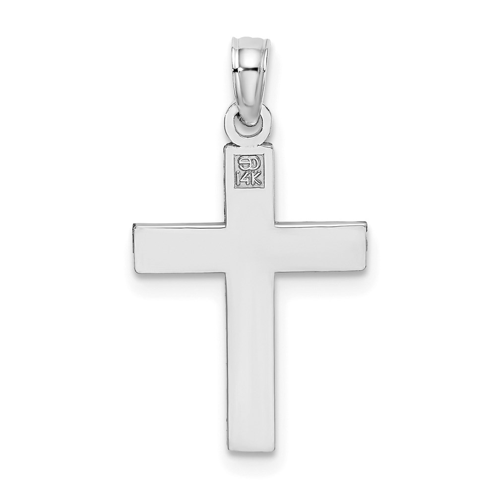 14K White Gold Diamond-cut Block Cross Charm