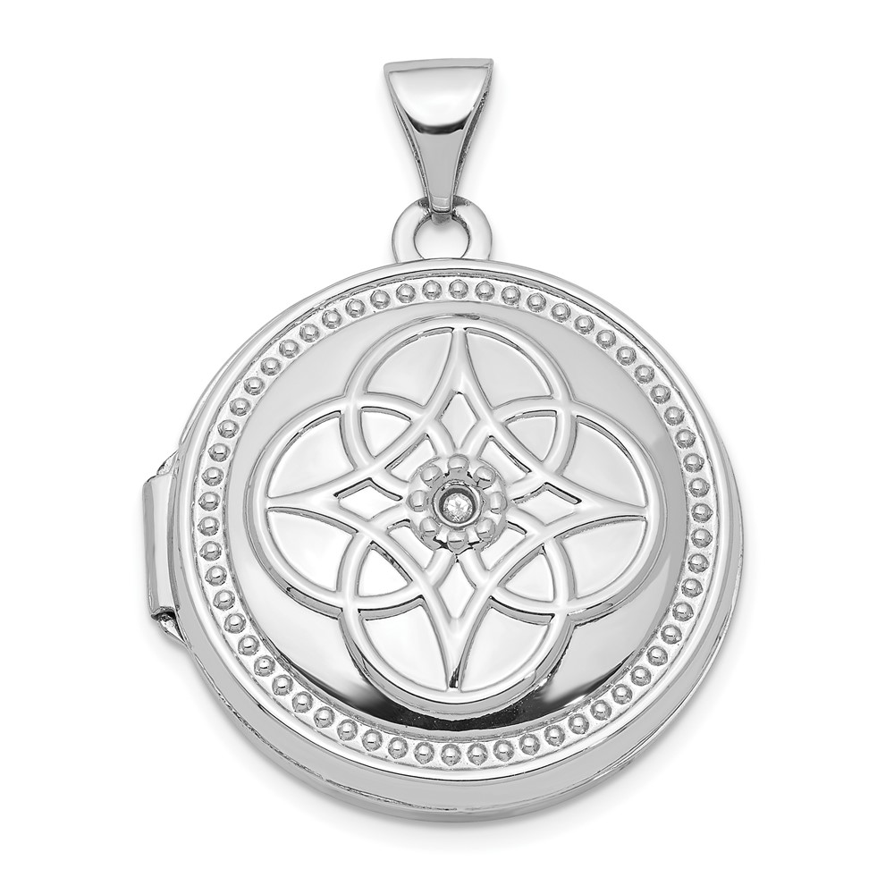 14K White Gold Diamond Fancy Knot Design 20mm Round Locket