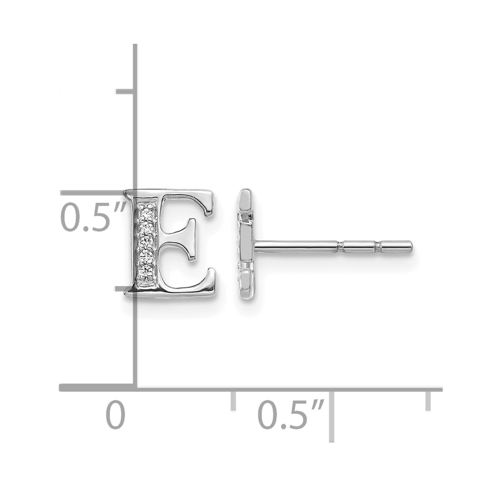 14k White Gold Diamond Initial E Post Earrings