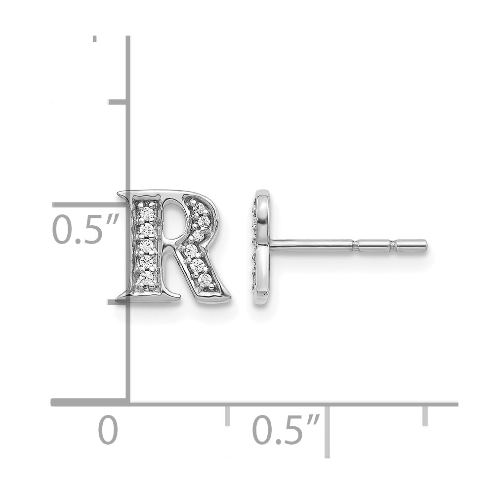 14k White Gold Diamond Initial R Post Earrings