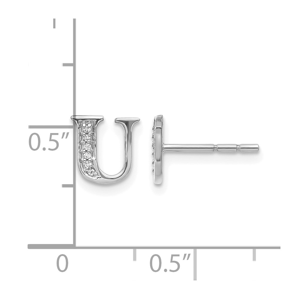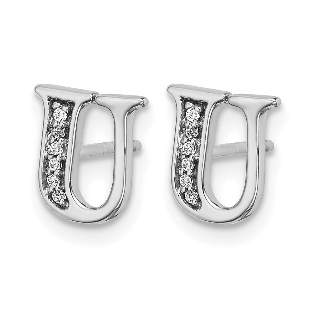 14k White Gold Diamond Initial U Post Earrings