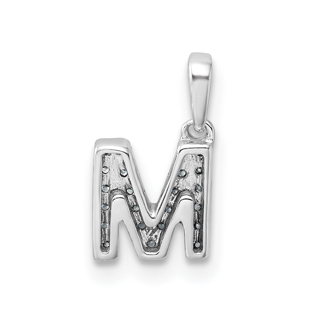 14K White Gold Diamond Letter M Initial with Bail Pendant