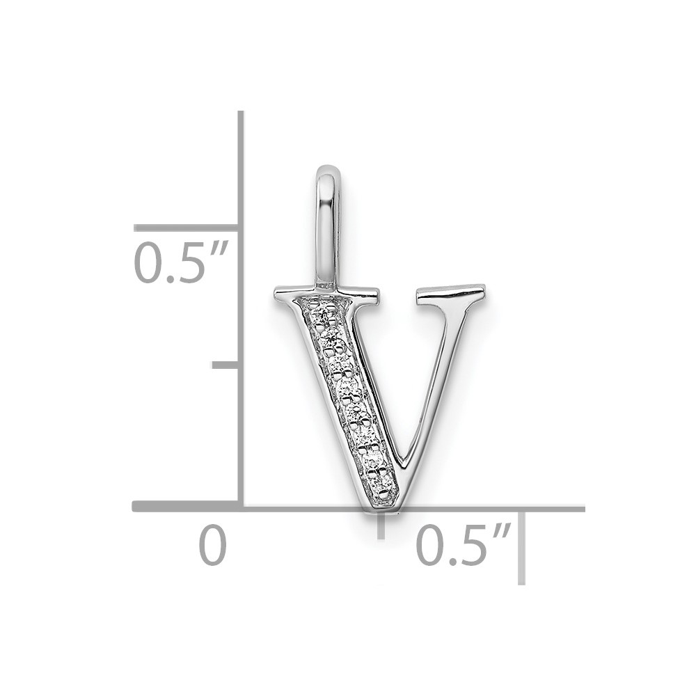 14K White Gold Diamond Letter V Initial Pendant