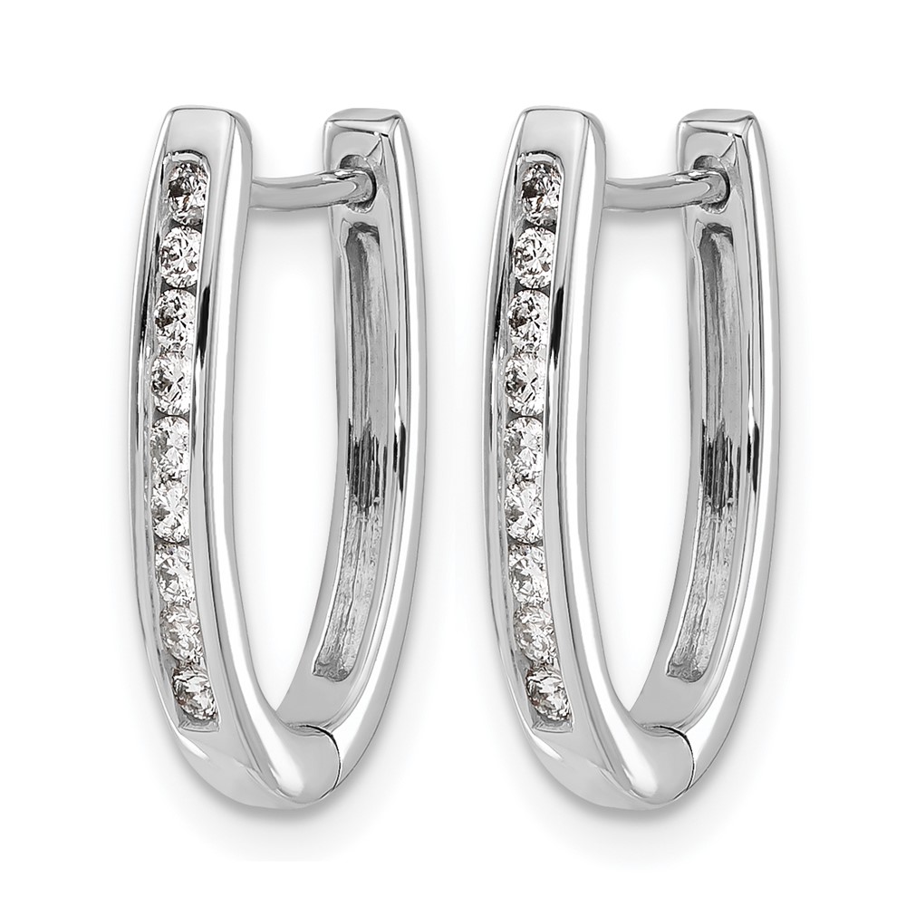 14k White Gold Diamond Oval Hinged Hoop Earrings