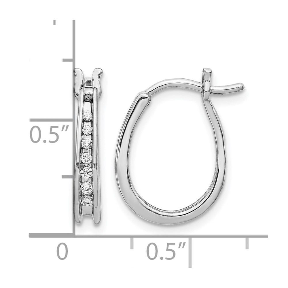 14k White Gold Diamond Oval Hinged Hoop Earrings