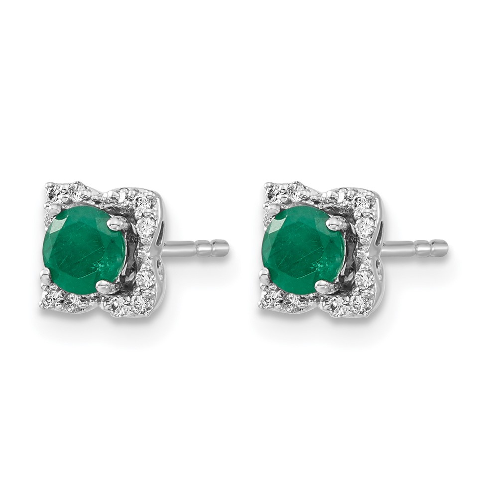 14k White Gold Diamond Square Jackets and 4mm Emerald Stud Earrings
