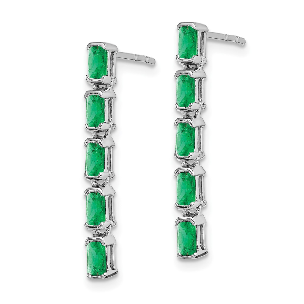 14k White Gold Emerald-cut Emerald 5-stone Dangle Post Earrings