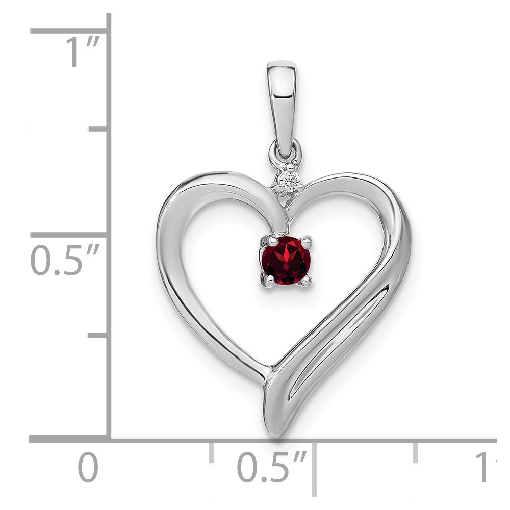 14k White Gold Garnet and Diamond Heart Pendant