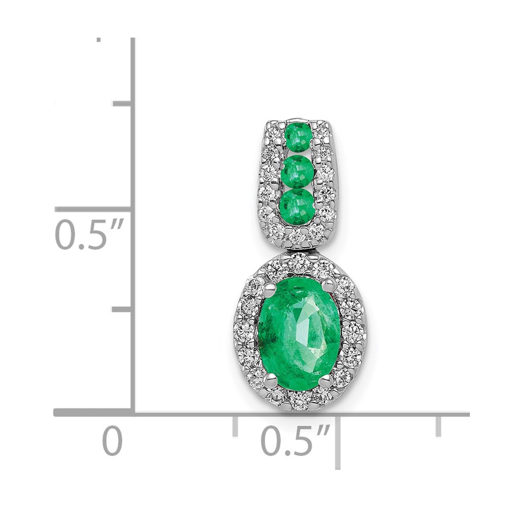 14k White Gold Halo Diamond and Oval Emerald Halo Pendant