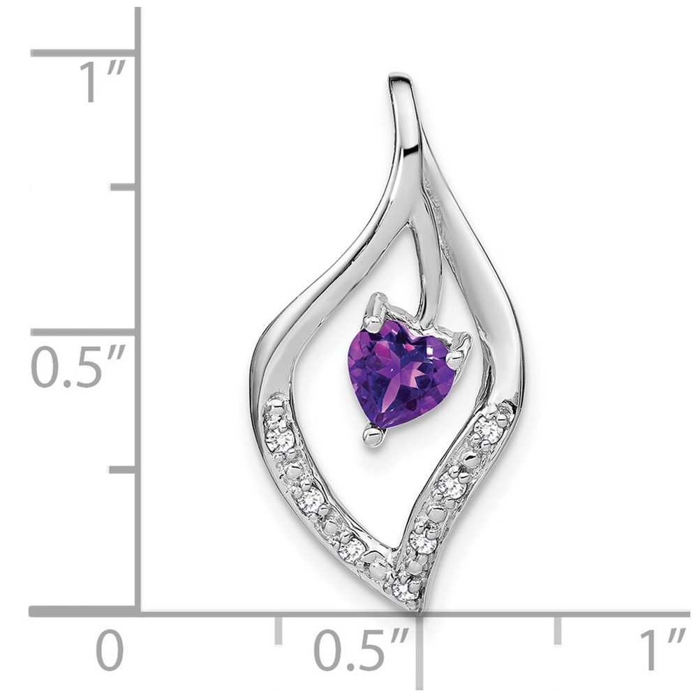 14k White Gold Heart 5mm Amethyst and Diamond Leaf Chain Slide