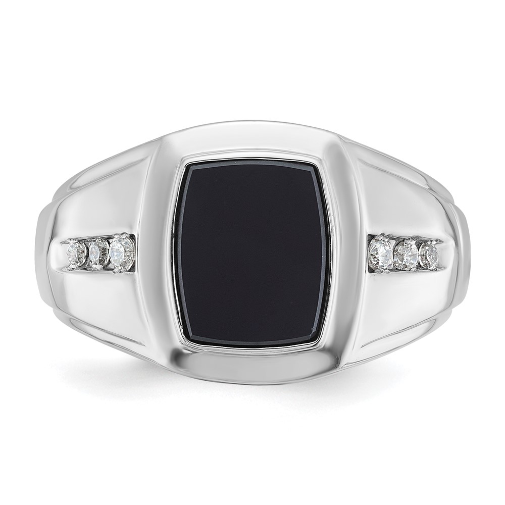 14k White Gold IBGoodman Men's Onyx and 1/8 carat Diamond Complete Ring