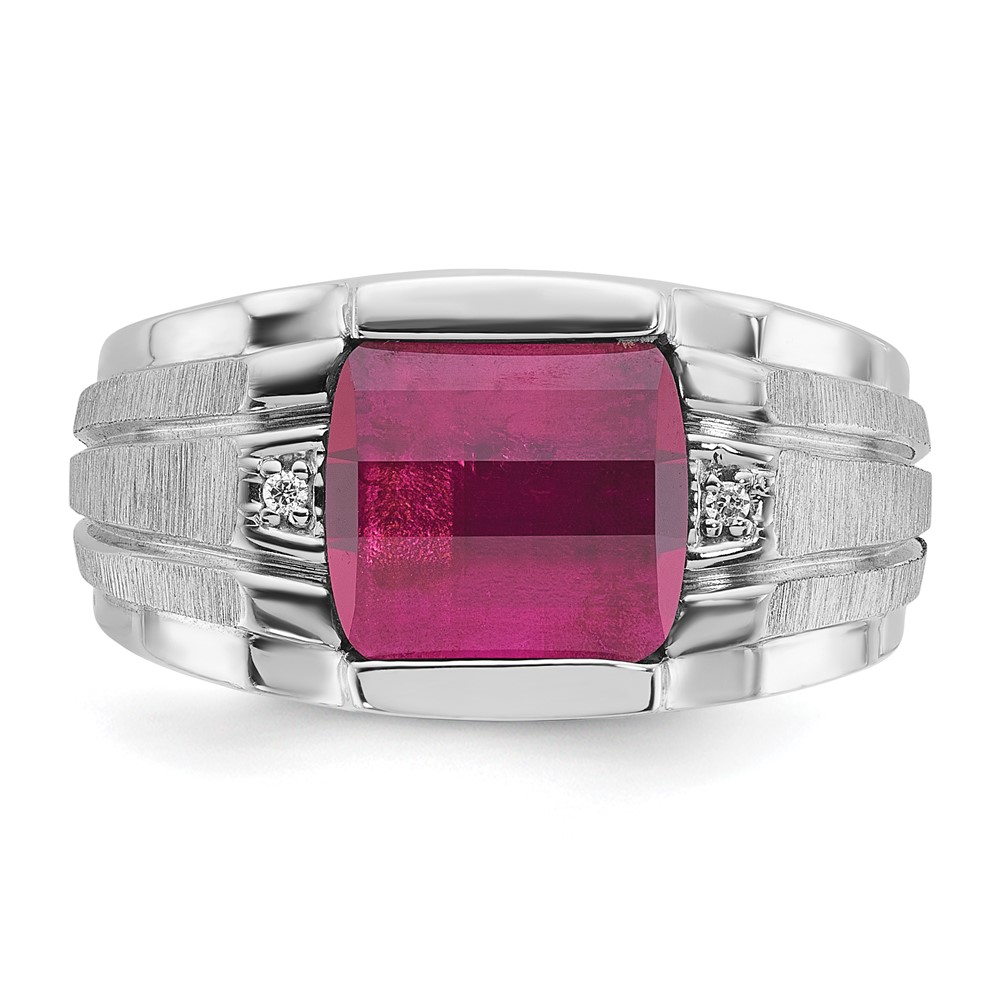 14k White Gold IBGoodman Men’s Satin Created Ruby and Diamond Complete Ring