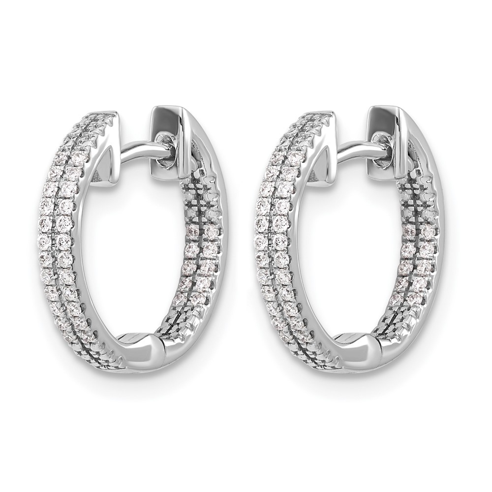 10k White Gold Polished Diamond In/Out Hinged Hoop Earrings