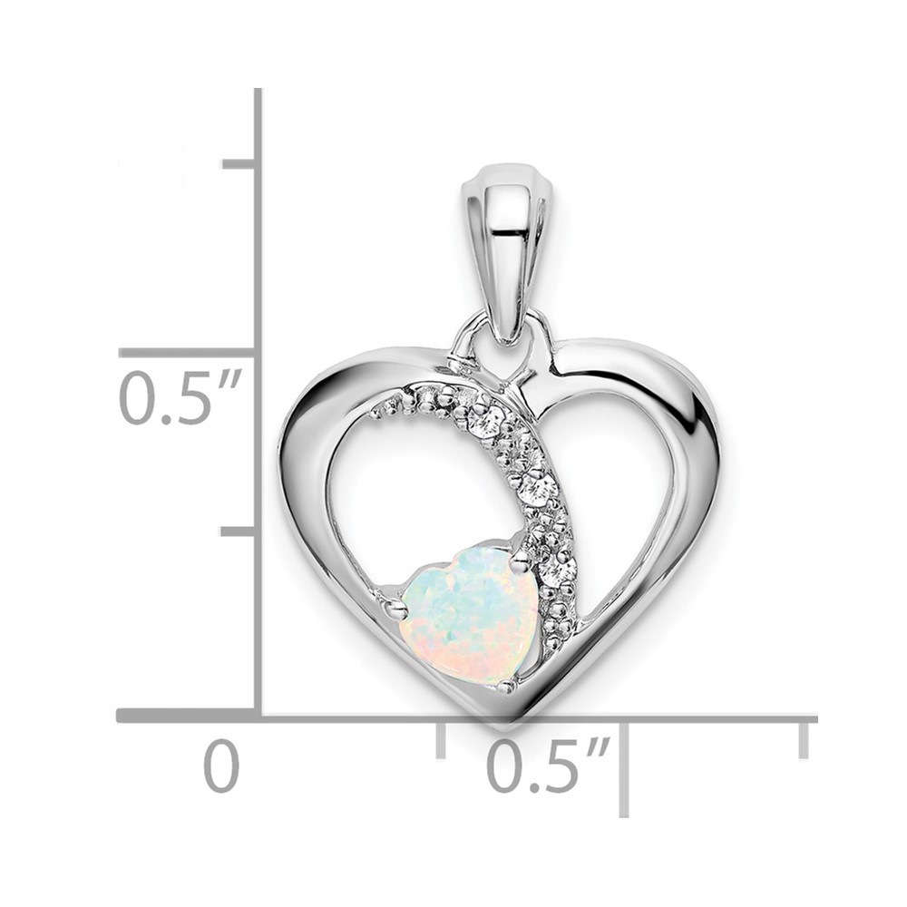 14k White Gold Lab Created Opal and Diamond Heart Pendant