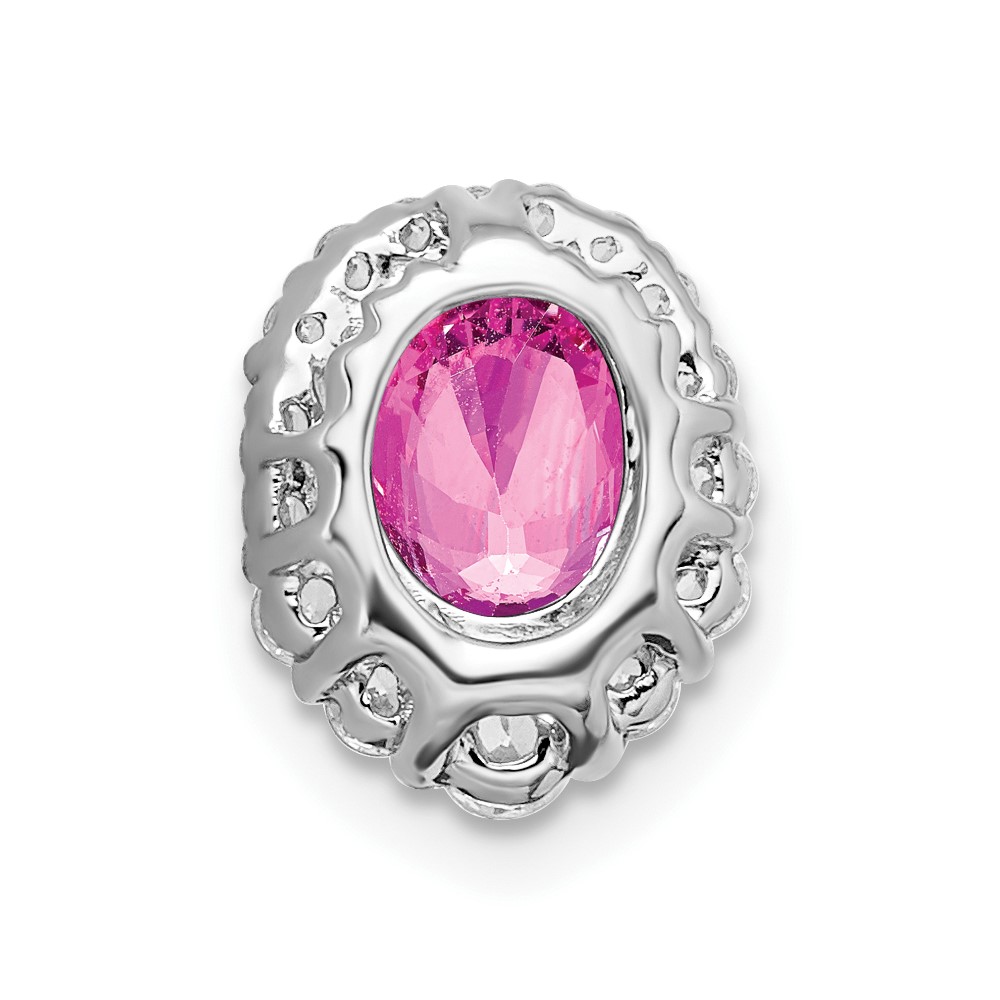 14k White Gold Oval Lab Created Pink Sapphire and Diamond Halo Chain Slide