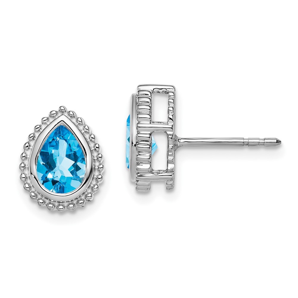 14k White Gold Pear Blue Topaz Post Earrings