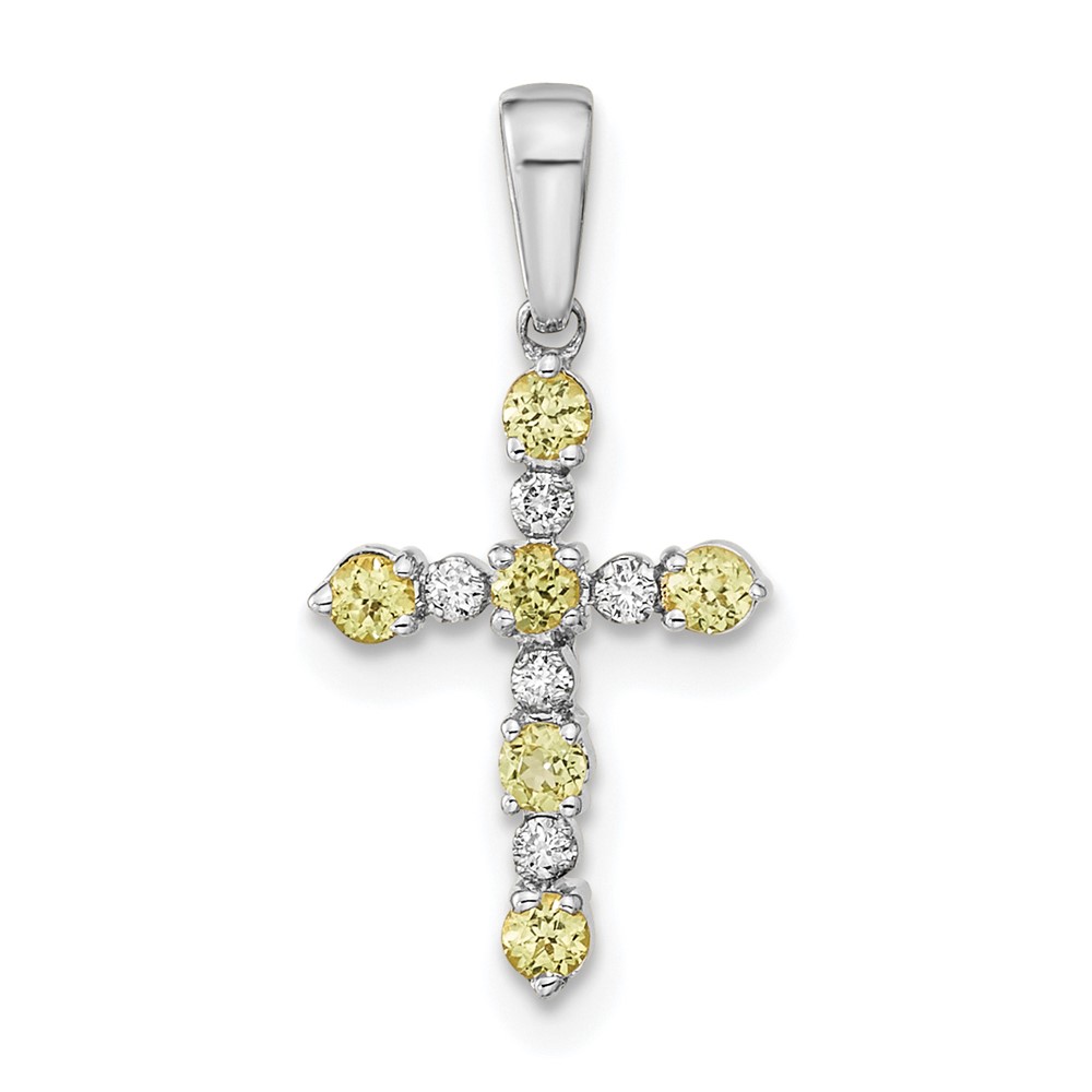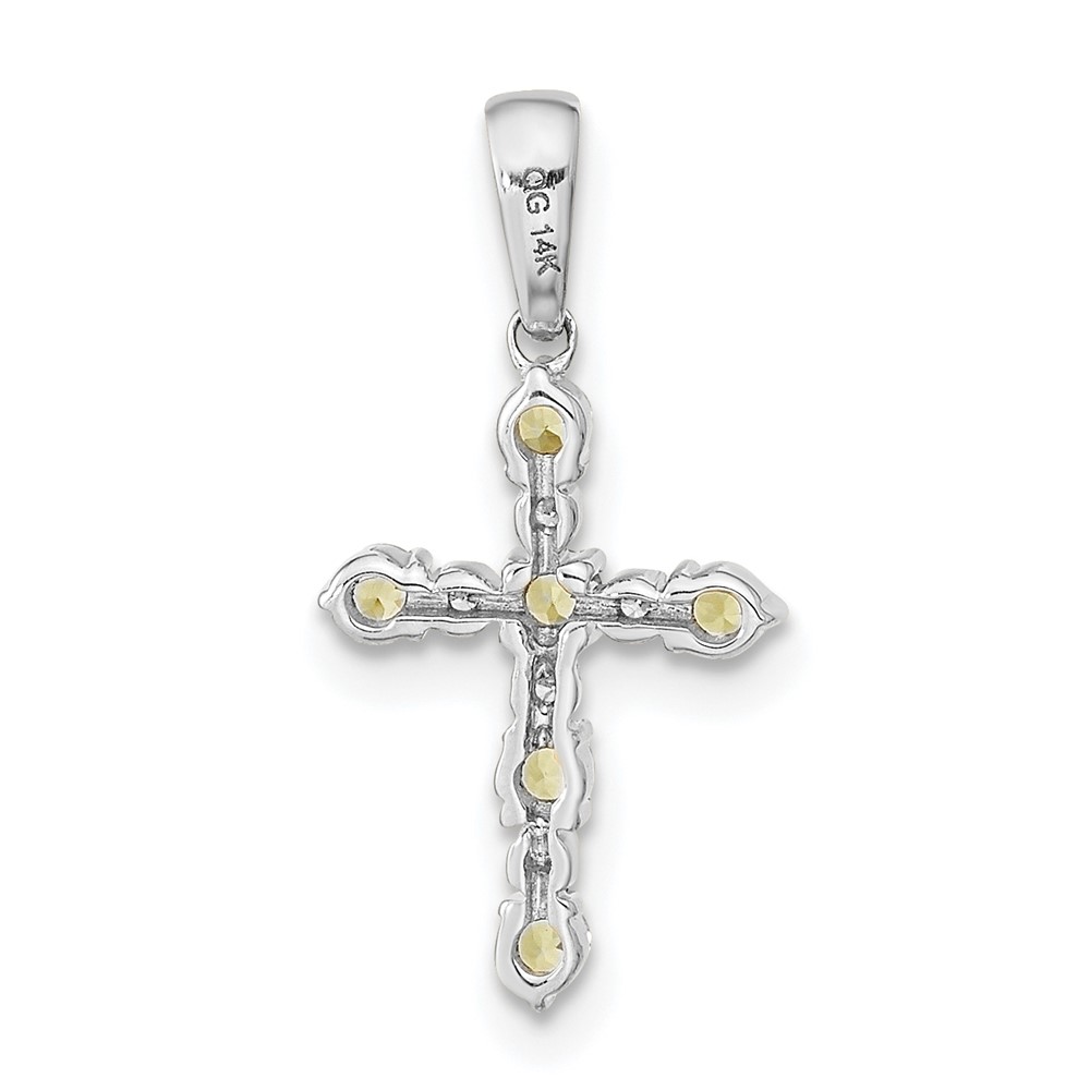 14k White Gold Peridot and Diamond Cross Pendant