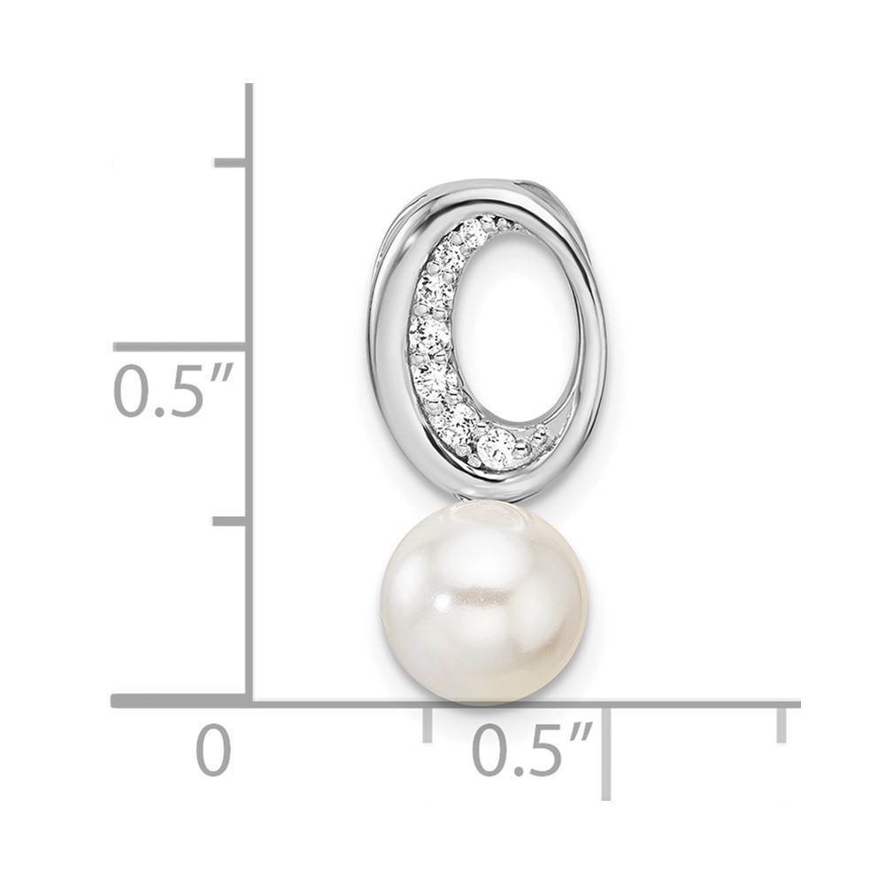 14K White Gold Polished 1/15 carat Diamond and White Freshwater Cultured Pearl Chain Slide