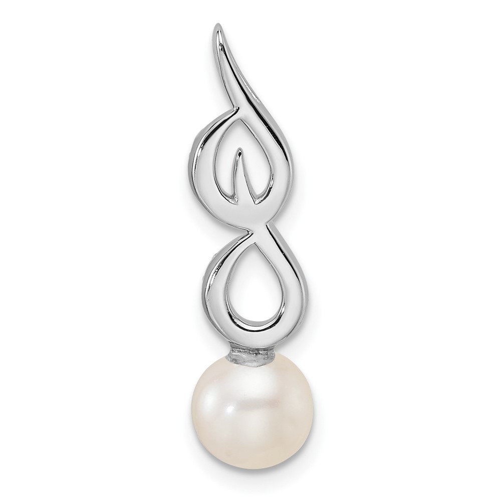 14K White Gold Polished 1/20 carat Diamond and White Freshwater Cultured Pearl Chain Slide
