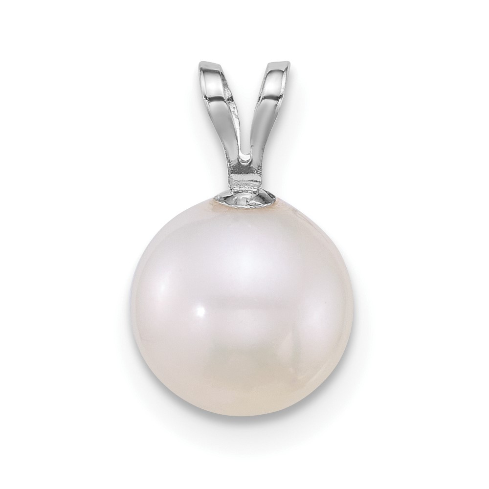 14k White Gold Polished 8-9mm Round White Freshwater Cultured Pearl Pendant